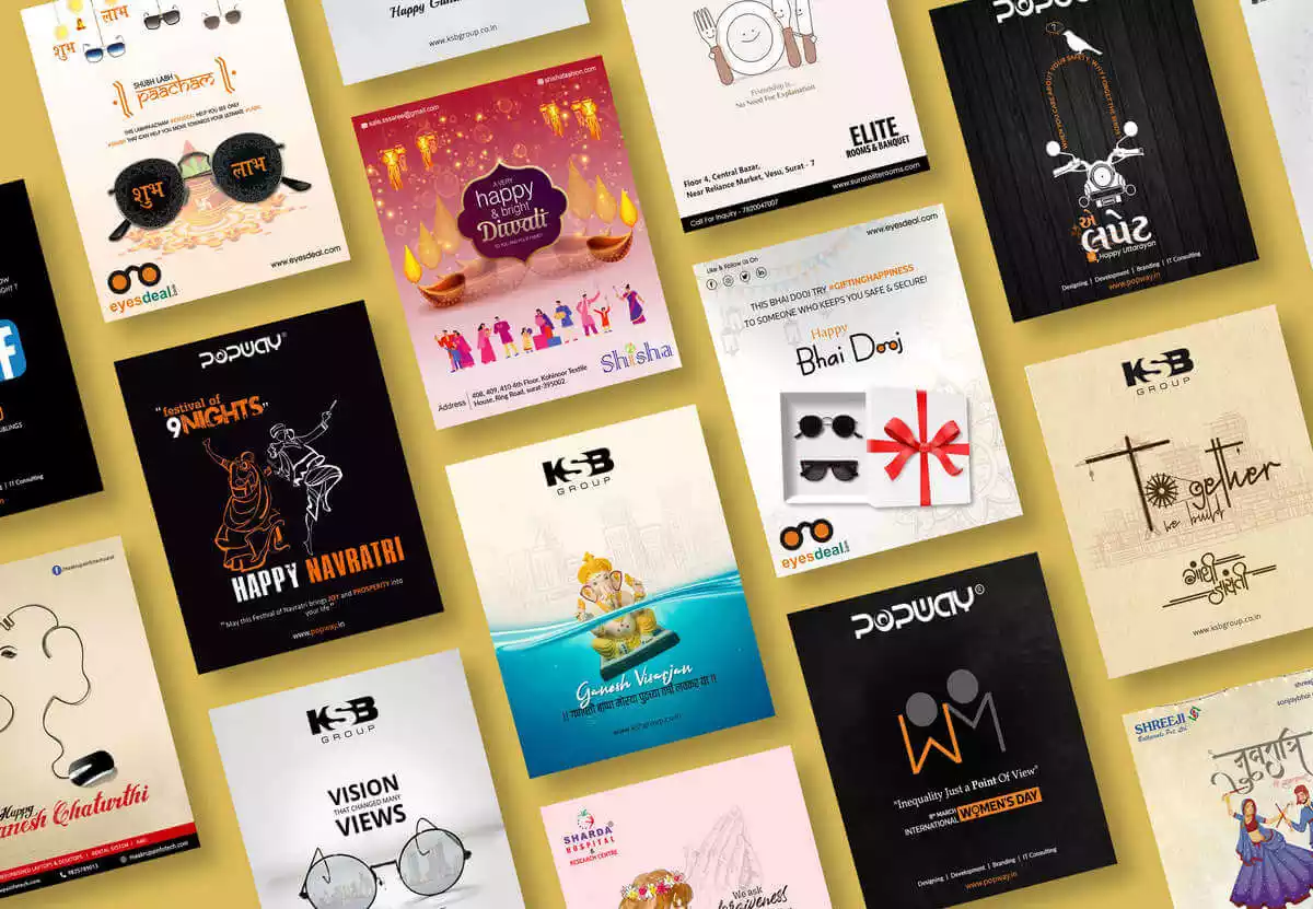 We always try to be active & grab the opportunity or occasion where we can create distinctive marketing pitch or offers. In India Festival are the best events, ordinarily celebrated by every community. Our Festival Creative helps Brands create a perfect reminders to our audience about their Brand’s/Business presence with the authentic designs in a unique way.
