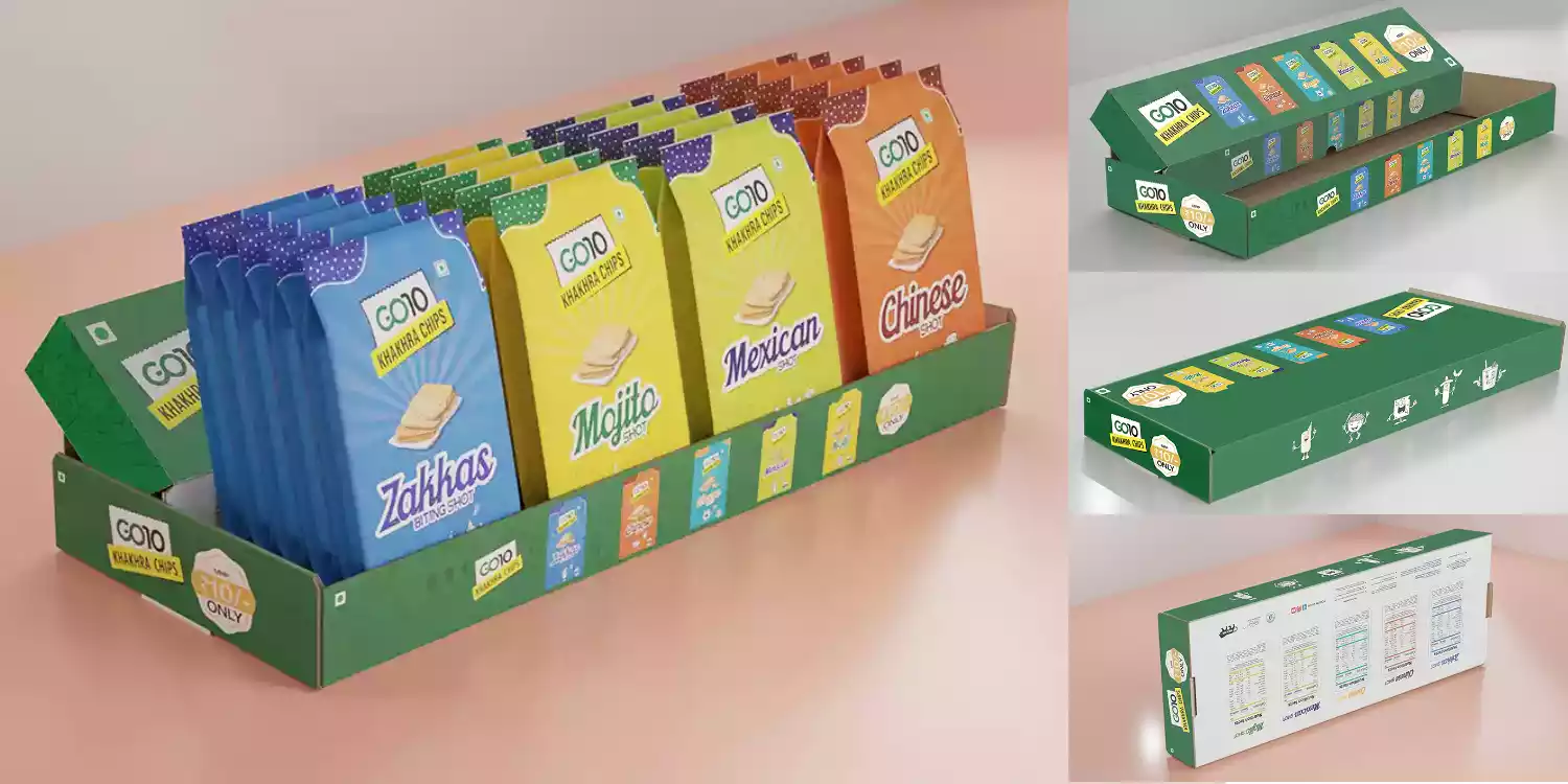 Packaging design is not only restricted to product packages, but there are huge range of Package Designs that suits to different purpose. Our client needed to design Corrugated box design for Go10 products. They did not wanted the plain box design like everyone else does. They were looking for something that can satisfy the functional, designer as well as the usage needs of the box.
