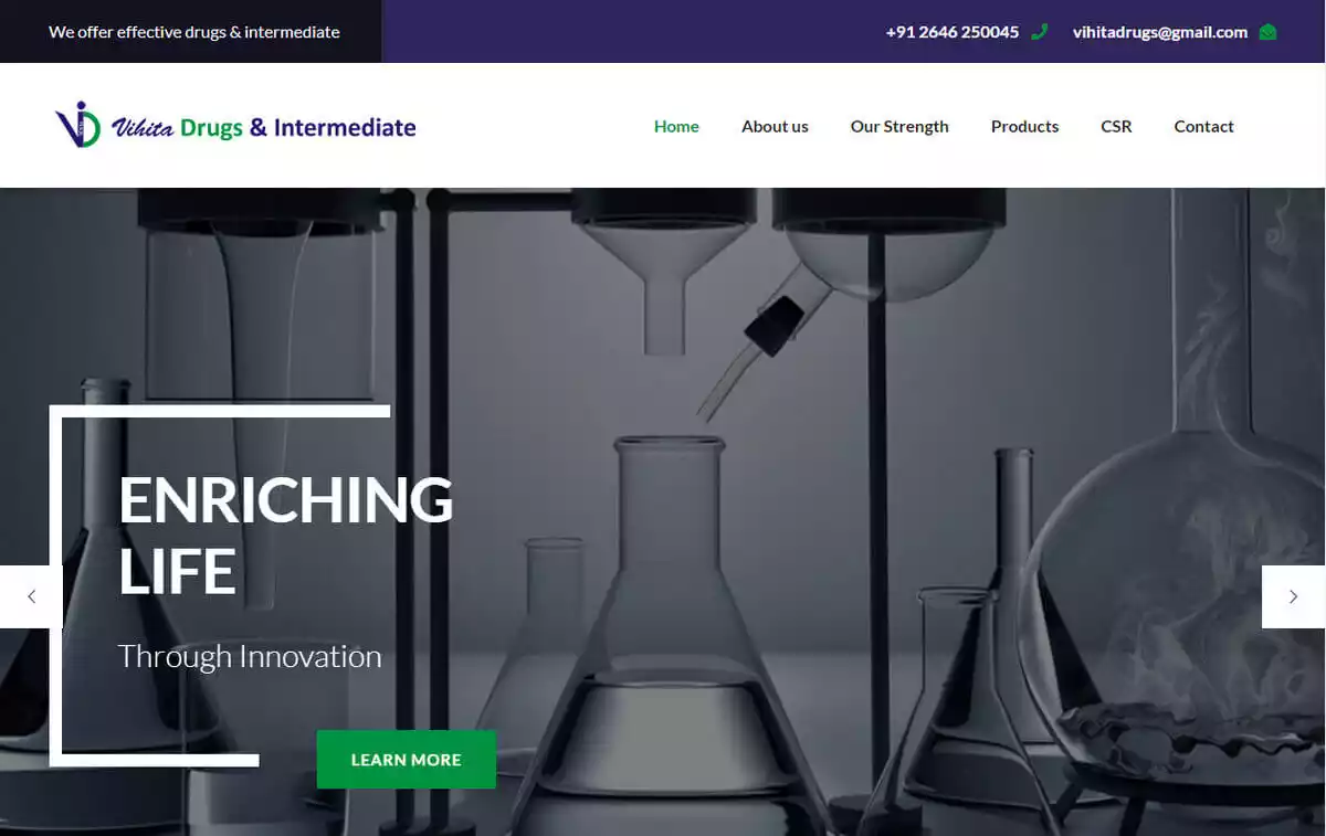 We made our client chemical business shine online with a custom digital chemical business website designed just for them by a Team of professional website designers. Being a part of chemical industry our client Vihita Drugs & Intermediate never thought of having a digital website but somewhere it was negatively affecting their business. In this digital era they didn’t had any digital presence which was restricting them to compete in the open world & their products and business was limited to offline world.