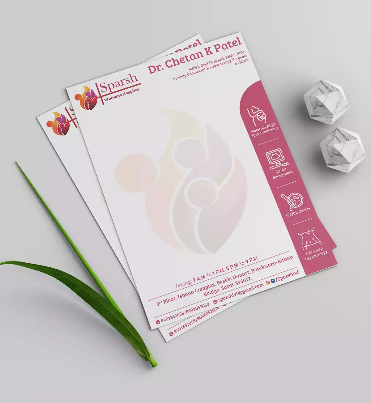 Project Background: Having practiced under various top gynecologists in the country for over a decade, the gynec doctor, Mr. Chetan Patel wanted to launch his own Gynecologist Hospital in Surat, India. The hospital is only for women & it will provide complete gynec solutions. Dr.Chetan Patel approached Popway for the Branding of their new gynecologist hospital i.e Sparsh Women’s Hospital located in Surat, Gujarat. The brief was to create such a Hospital Brand which reflects women's health & gives them the feeling of being cared for Sparsh.